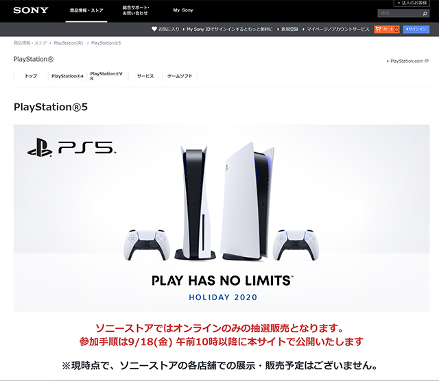 販売数は、毎日20組で、ドライブ付きのPlayStation®5のみ。