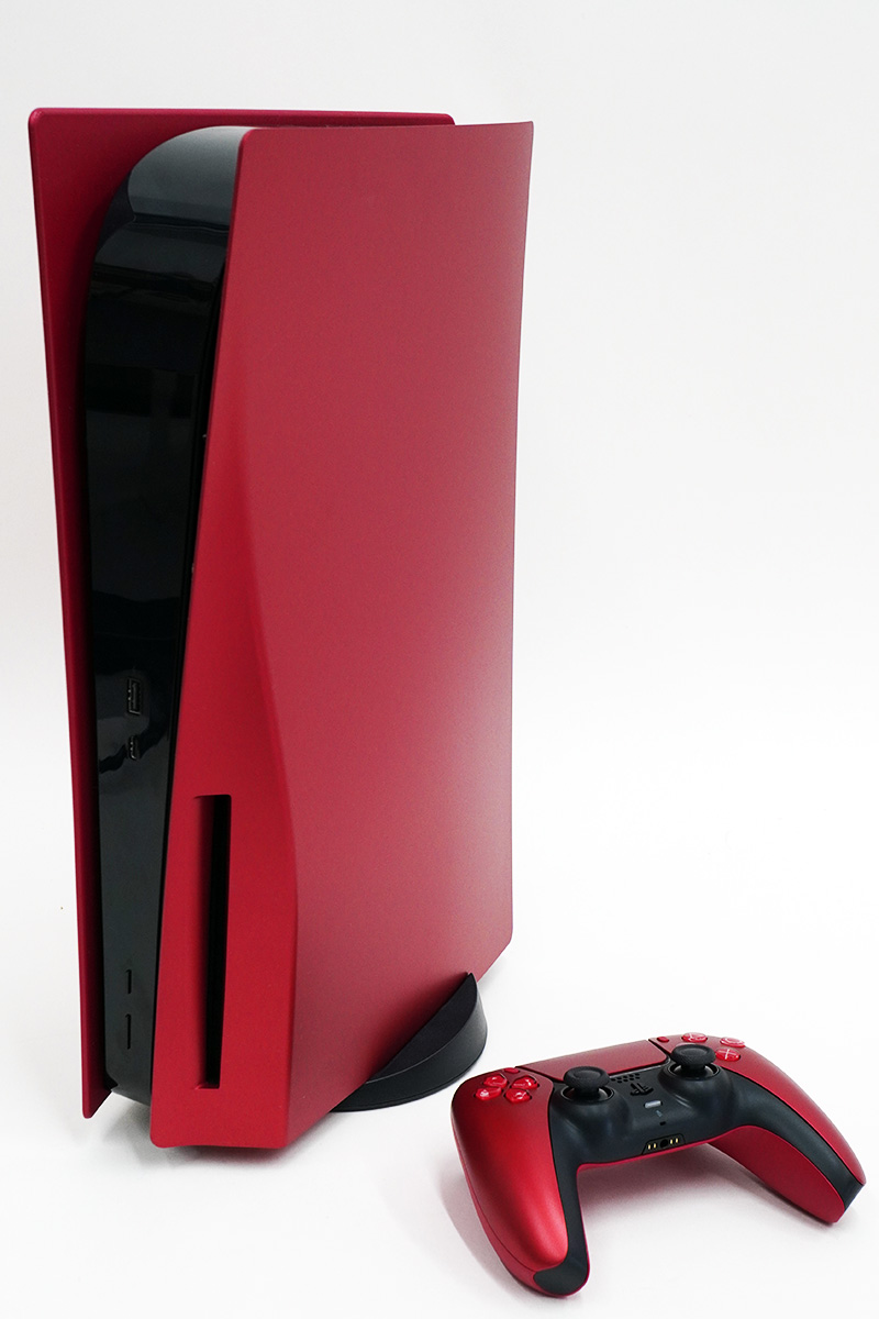 PlayStation 5専用 メタリック仕上げのカバー「Deep Earth Collection」ヴォルカニックレッドを装着してみた。DualSense ワイヤレスコントローラーとおそろいにすると、限定モデルのような佇まいに。