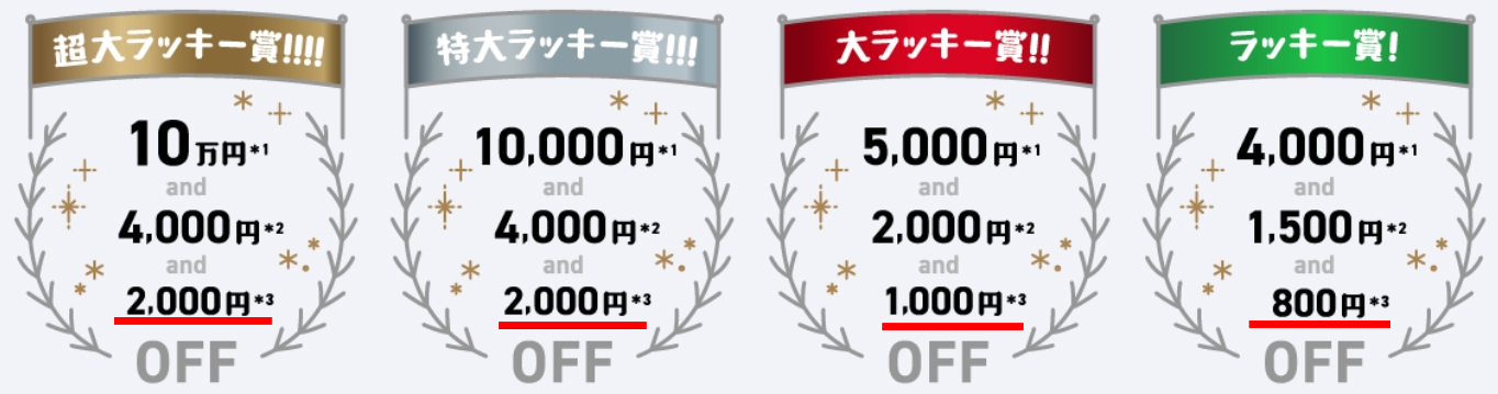 また、パッと見た感じ物凄い大きい金額の値引きができるんじゃ?と思い込んでしまうけれど、購入する金額によって使える「お買い物券」は異なる。