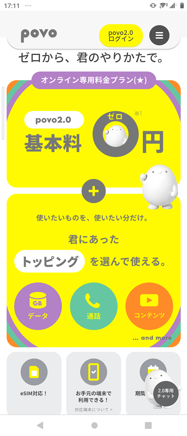 それが、9月29日よりなんと基本料金0円からトッピングを組み合わせられる「povo2.0」を開始。