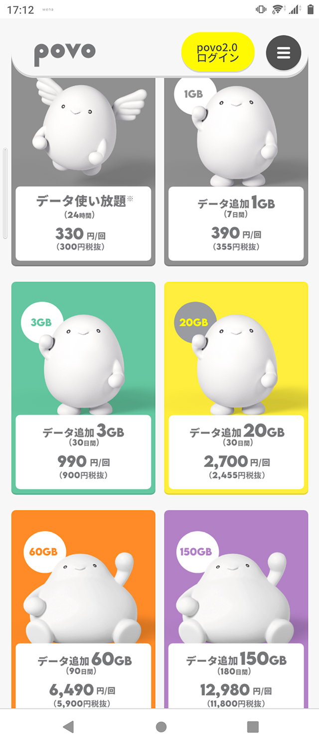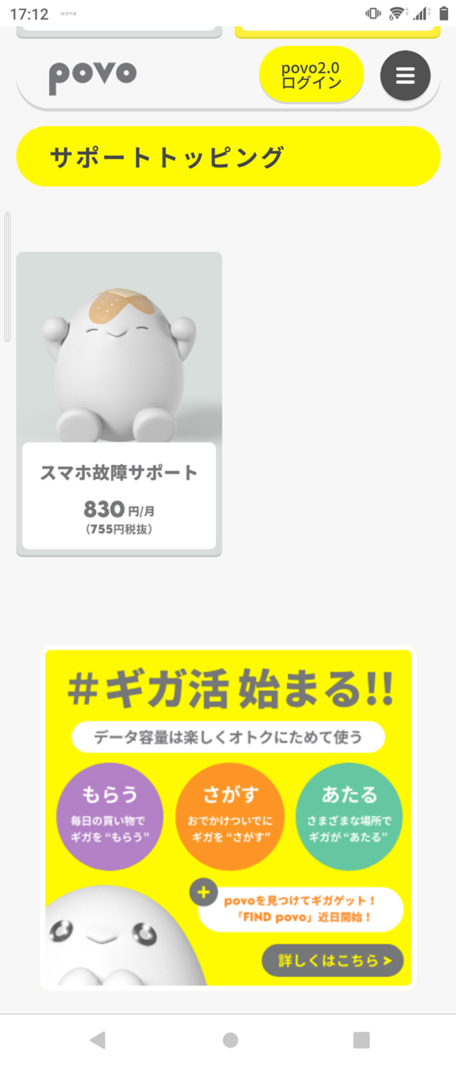 KDDI(au)のオンライン専用ブランド「povo」はもともと月額2,728円(税込)20GB利用できるというサービス。