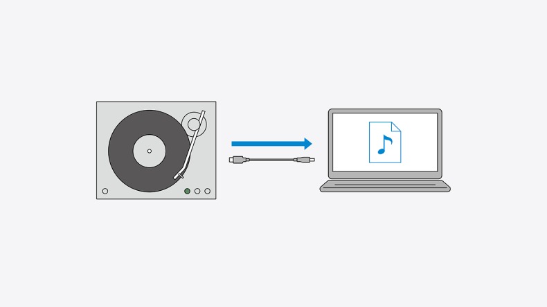 内蔵USB出力を使えば、レコードをデジタルオーディオファイルに変換し、スマートフォン、パソコン、お気に入りの音楽アプリで再生することができる。