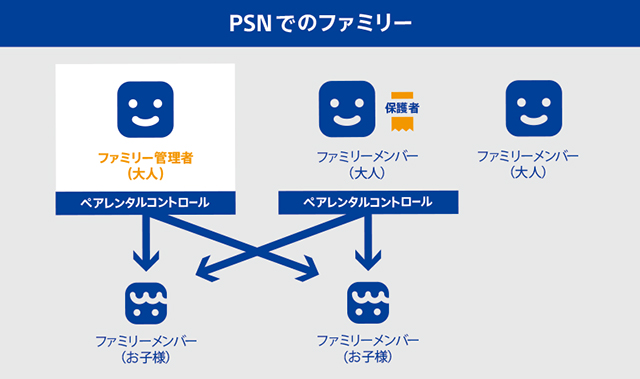PS4のユーザーをファミリーメンバーとして登録することで、子供の情報管理や利用制限の設定がしやすくなる。