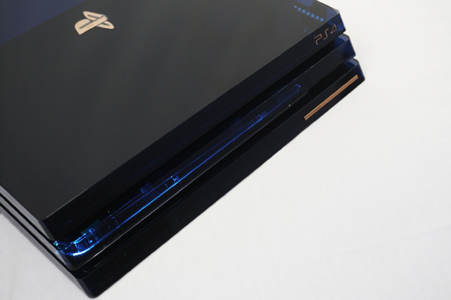 PS4 Pro本体は、濃紺色にスケルトンデザインの特別仕様。