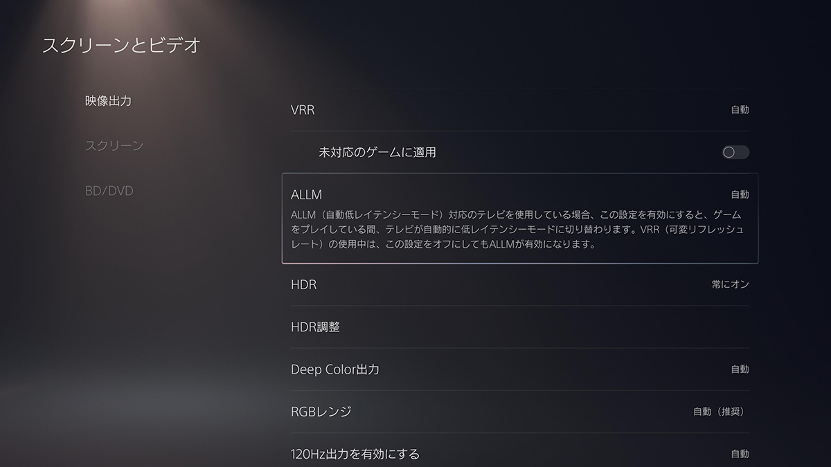 ALLM(自動低レイテンシーモード)については、既に対応はしている機能だが、PS5側で任意に設定が出来なかった機能。