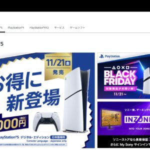 ソニーストアでも2025年11月21日より始まったプレイステーションブラックフライデーセールについて、あっという間に在庫切れで購入できない状態となってしまった。