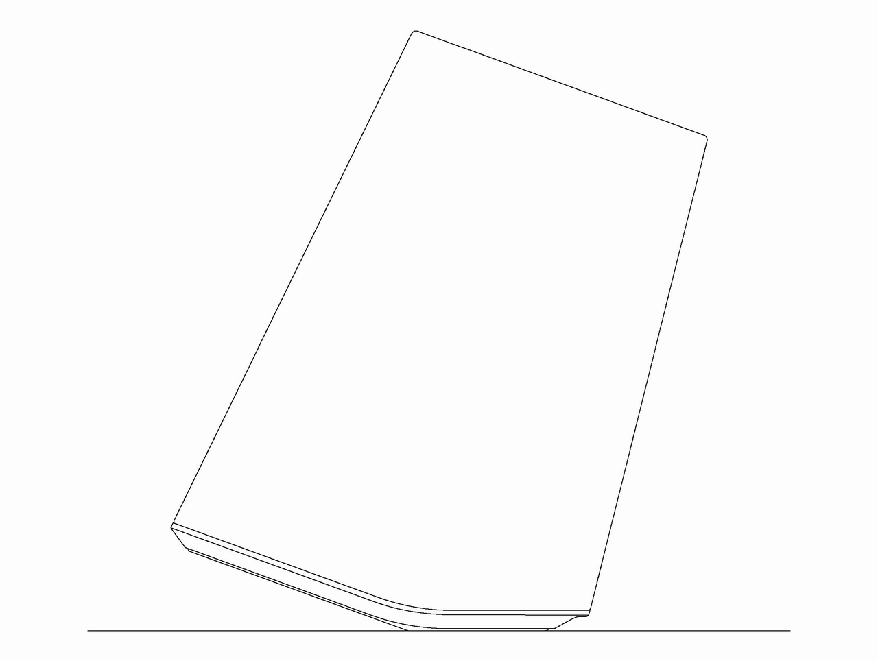 スピーカーデザインの特徴として、直立状態でも傾斜状態でもスピーカーを設置することができる様になっている。