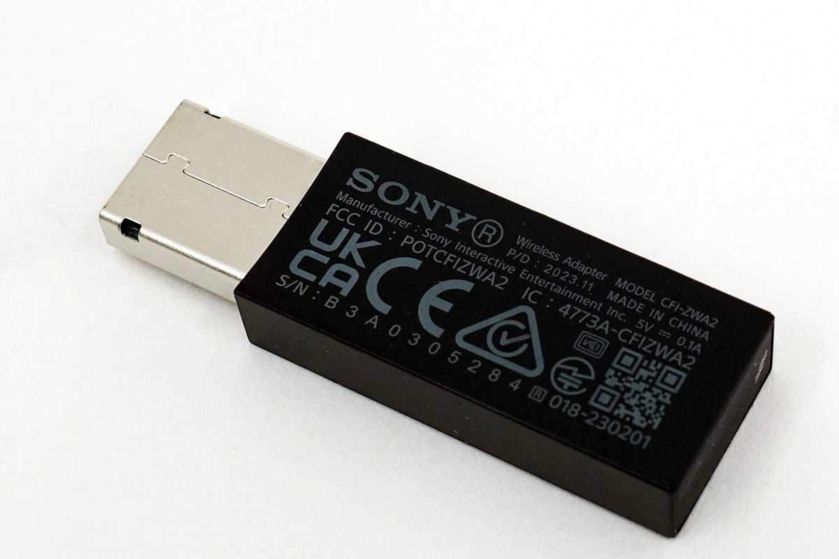 PlayStation 5と連携して使いたい場合には、付属しているUSBアダプターを本体のUSBに挿せば、最初からペアリング済みのためすぐに利用できる。
