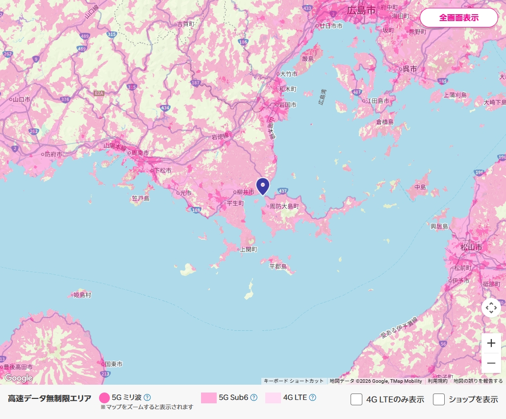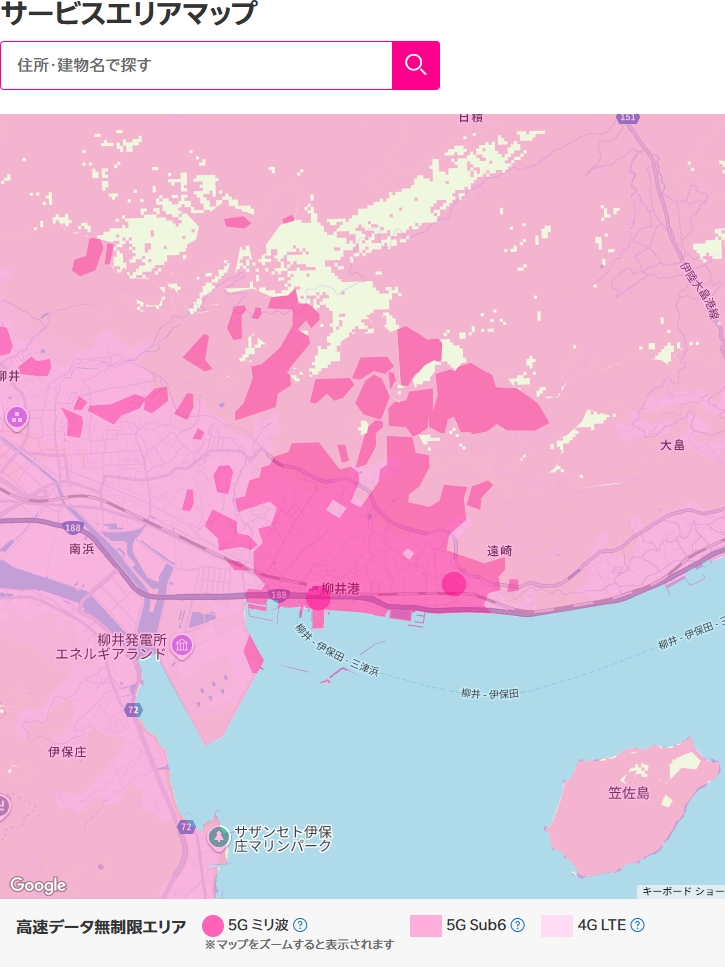 ただし、地方では5Gエリアは非常に少なく、大半が4G(LTE)エリアとなっている。