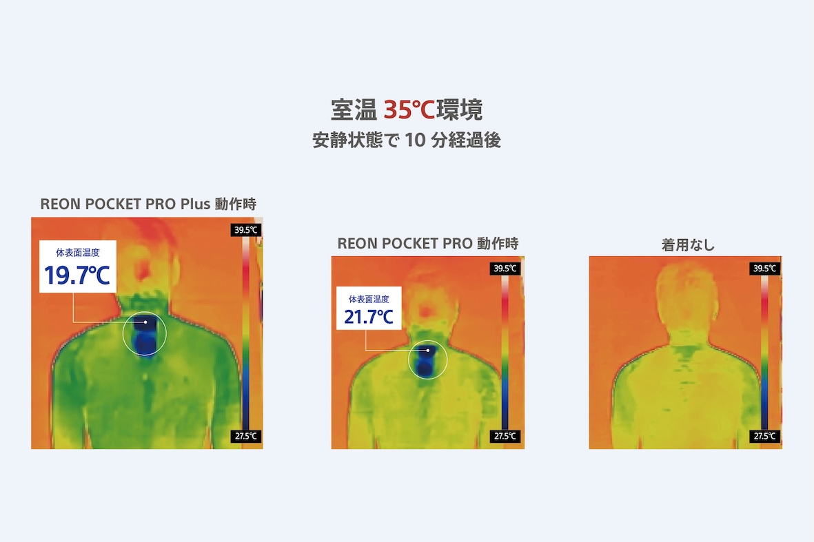 「REON POCKET PRO Plus」(レオンポケット プロ プラス)は、ウェラブルサーモデバイス「REON POCKET」シリーズのフラッグシップモデル。