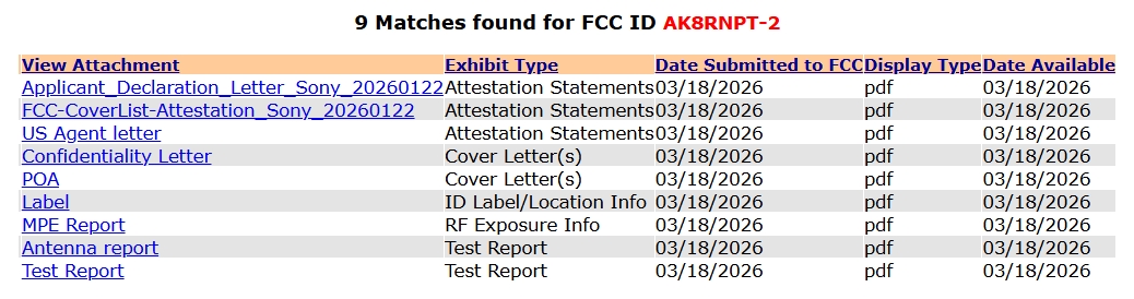 日本の技適認証情報にウェアラブルサーモデバイスREON POCKET 6(RNP-6)とともに掲載されたREON POCKET TAG2(RNPT-2)について、 アメリカのFCC(連邦通信委員会)の認証に「RNPT-2」という同一の型番で認証が取得された。