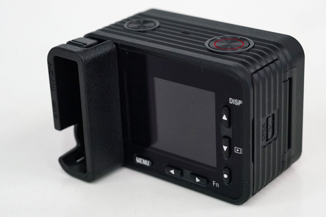 本体サイズは、幅59.0 × 高さ40.5 × 奥行 29.8mmという四角い立方体に、約110g(記録メディアとバッテリーを含む)という軽さ。