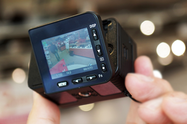 背面の1.5型約23万ドットのディスプレイに、いきなり可動式液晶モニターを搭載。