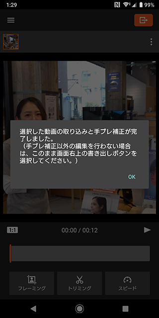 スマホに転送した動画は、自動的にカメラの撮影情報を利用して手ブレを抑えたなめらかな映像に編集してくれる。