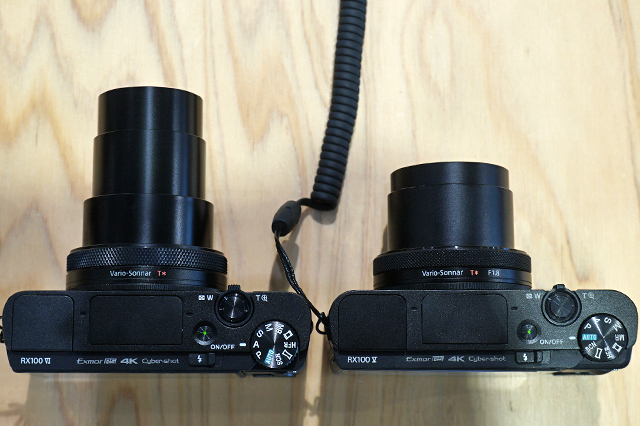 「RX100Ⅴ」の鏡筒は2段なのに対して、「RX100Ⅵ」の鏡筒は3段式で、その一つぶんだけより長くなる印象。