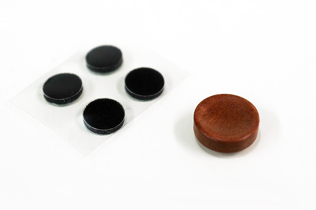 ウッドレリーズボタンは、縁が高くて中央が凹んだ形状。