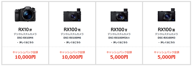 ※RX100Ⅴは、RX100M5Aのみが対象。RX100M5はキャンペーン対象外。