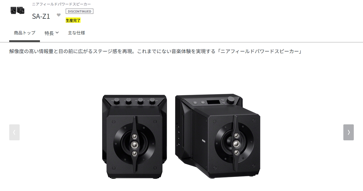 また、「SA-Z1」の製品ページでも、既に[DISCONTINUED]および生産完了と表示されている。