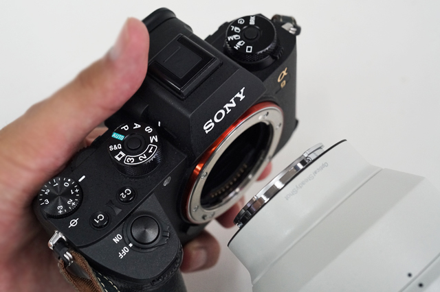 「SEL100400GM」は、もはやEマウントというカテゴリーを飛び越えて重量級に突入するので、しっかりホールドできることが重要になってくる。
