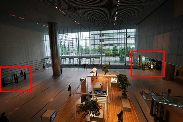 また、光量の少ない屋内で400mmの望遠撮影をする撮りという条件で、はるか先にあるインフォメーションボードを撮影しても、手ブレもなくクッキリハッキリと図や文字が読める解像度。
