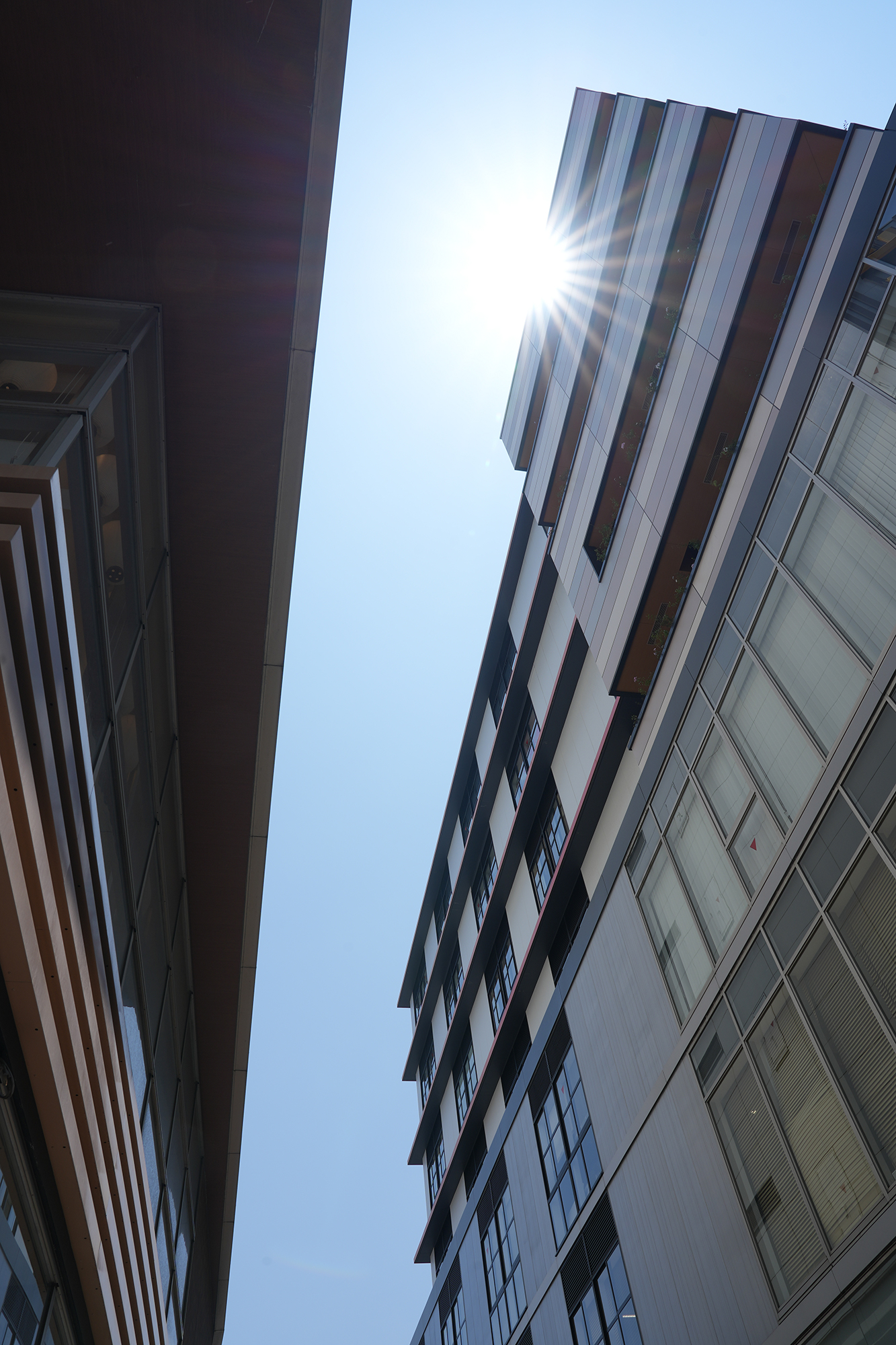 と「SEL2470GM」の撮影比較として、ソニーストア福岡天神の出入り口から少し出たところから、道路を挟んだ目の前にある建物をワイド端(焦点距離24mm)、開放絞りF2.8で撮影。