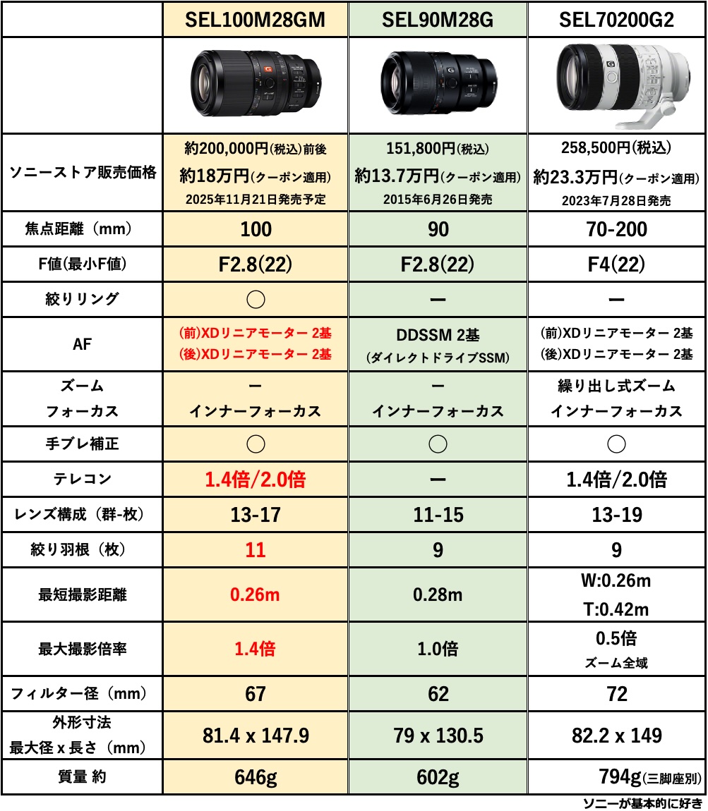 最新レンズの「SEL100M28GM」とは約5万円の差、マクロレンズを購入予定の人は考慮しておこう。