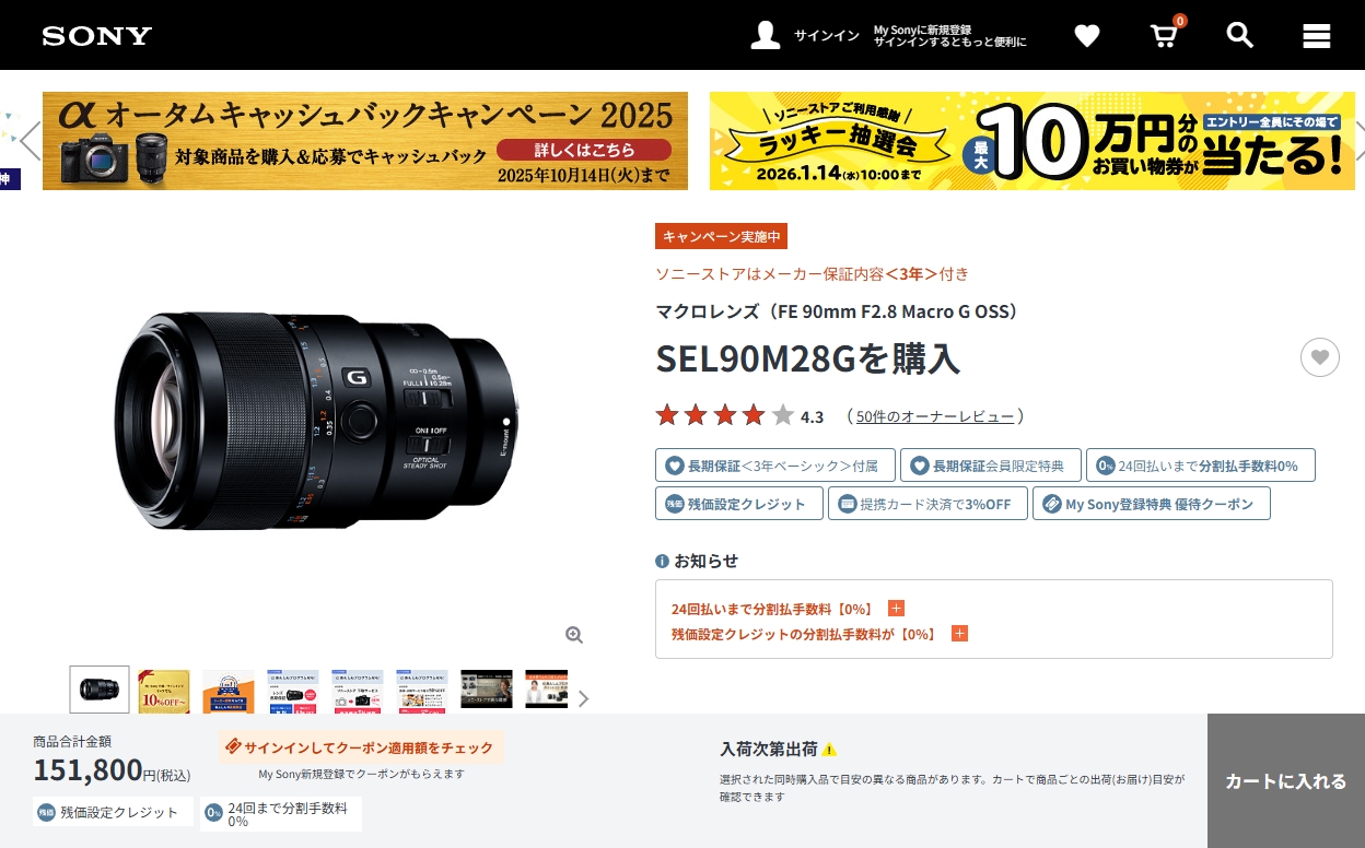 2025年8月29日(金)~2025年10月14日(火)までの期間限定で行なわれる「αオータムキャッシュバックキャンペーン2025」の対象レンズにもなっている。