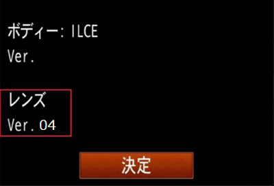 レンズ本体ソフトウェアのバージョンが「Ver.04」になっていればOK