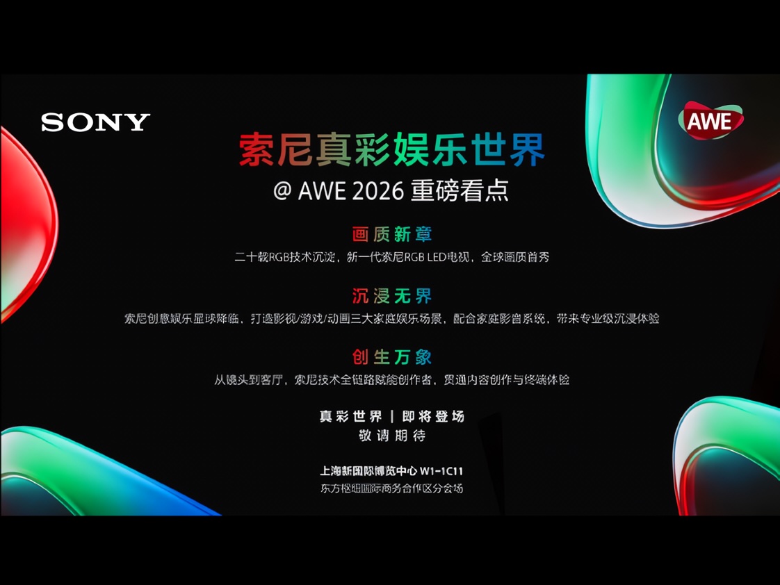 ・AWE 2026重磅预告:索尼真彩娱乐世界,尽在W1-1C11现场! ——索尼RGB LED电视再启新篇,新品画质全球首秀!