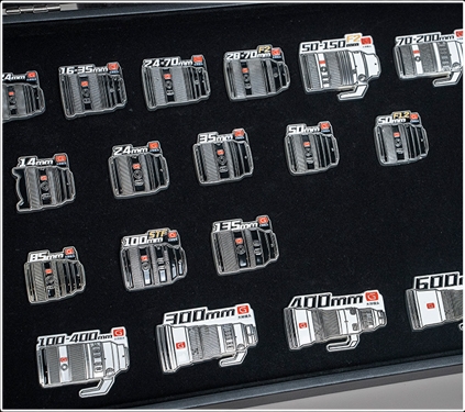物理バッジは、Gマスターレンズをデザインし、上部に焦点距離とGマスターレンズのロゴが配置されている。