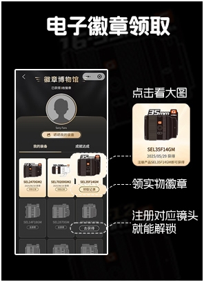 ソニー中国は、対象のGマスターレンズを購入して製品登録すると、電子バッジと物理的なレンズバッジなどをプレゼントするキャンペーンを実施中。