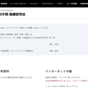 ソニーは、2024年度決算発表を含む経営方針および業績に関する説明会を5月14日(水)16時より開催。