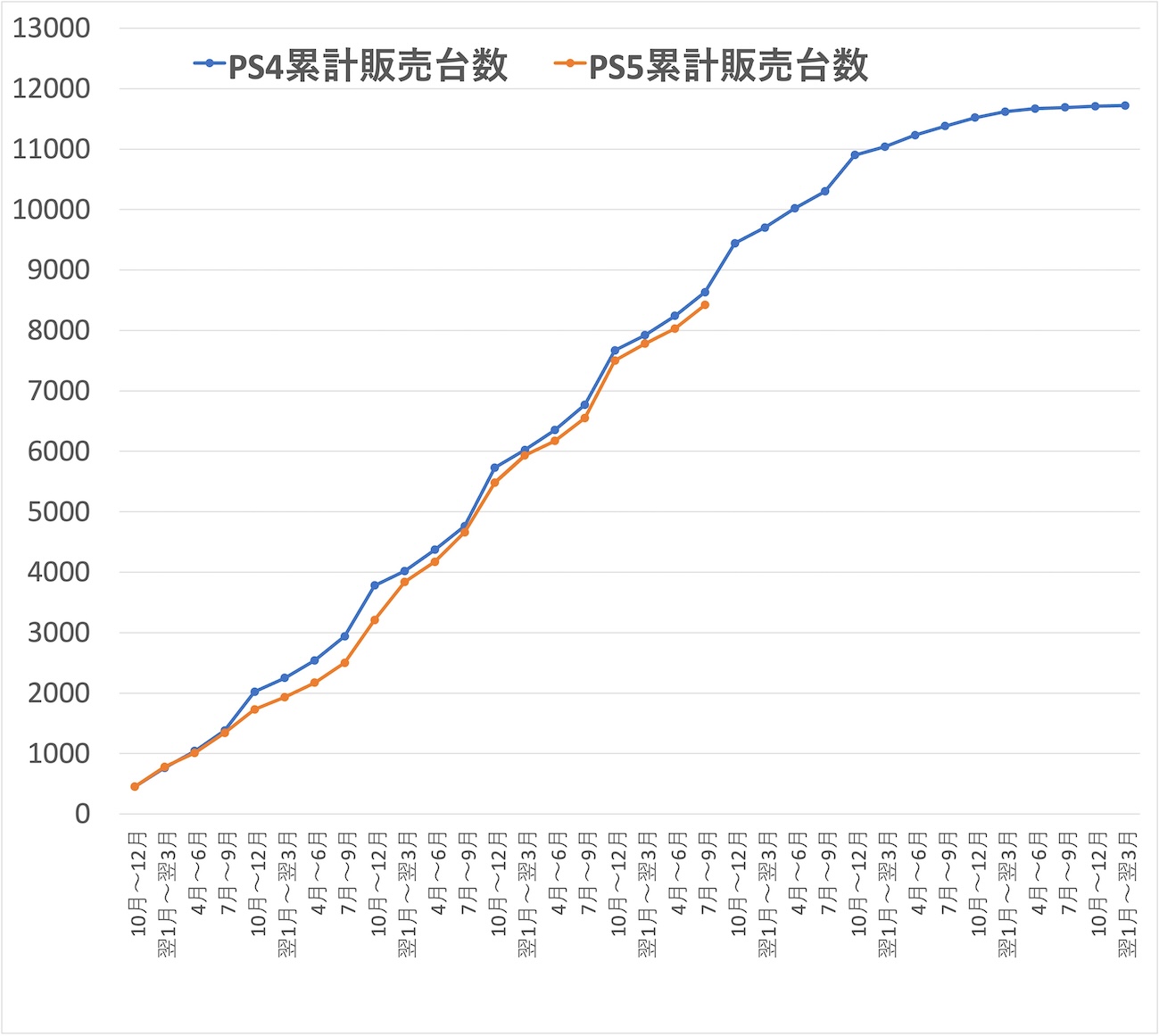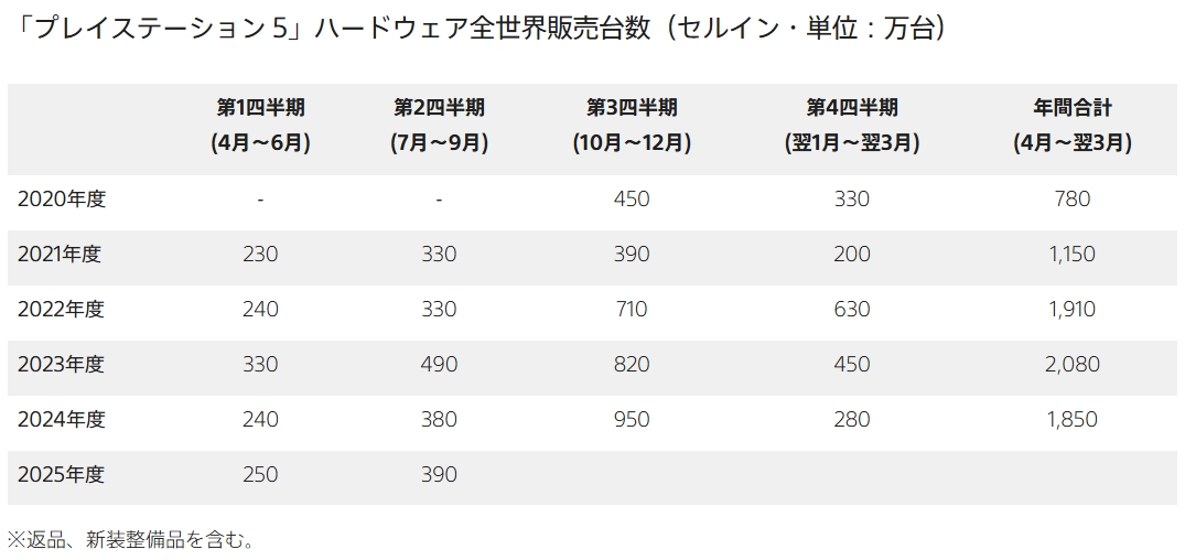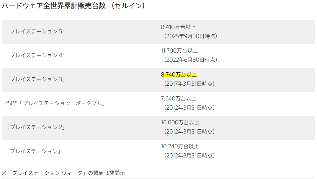 仮に前年(950万台)以下の販売台数だったとしても、340万台ほど売り上げていればPS3の累計販売台数8,740万台を超えることになる。