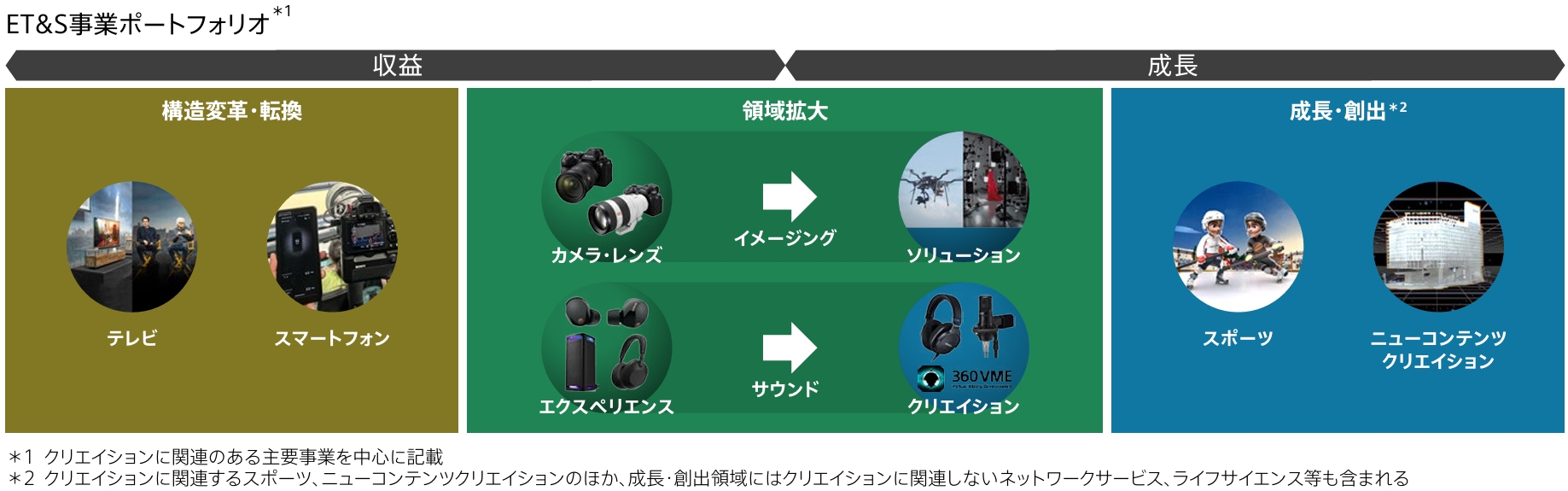 1. 構造変革・転換(テレビおよびスマートフォン事業) 徹底的な構造変革とクリエイション領域への事業転換を行い、収益水準向上とボラティリティ低減を進め、リスクをコントロールします。2026年度中に、販売体制の再編成、製造拠点の最適化など、主要な構造改革を完遂する計画です。