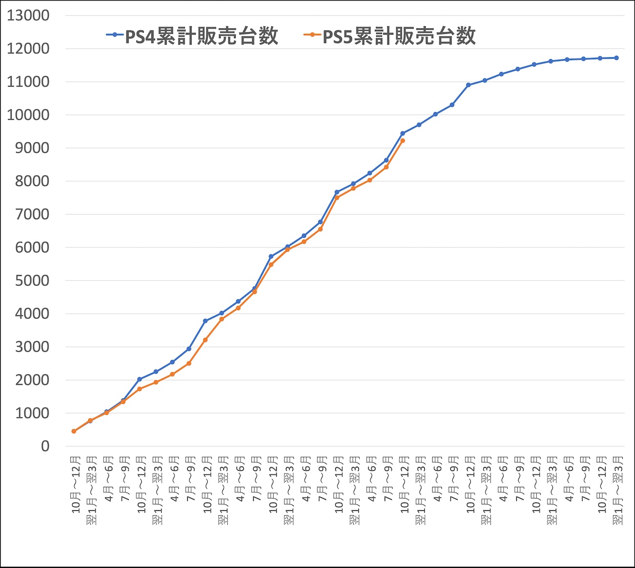 PS5累計販売台数は9,210万台となり、PS3累計販売台数の8,740万台を超えた。