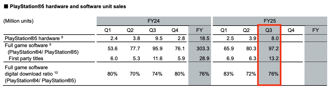 追記、2025年度第3四半期のPlayStation5本体売上は800万台