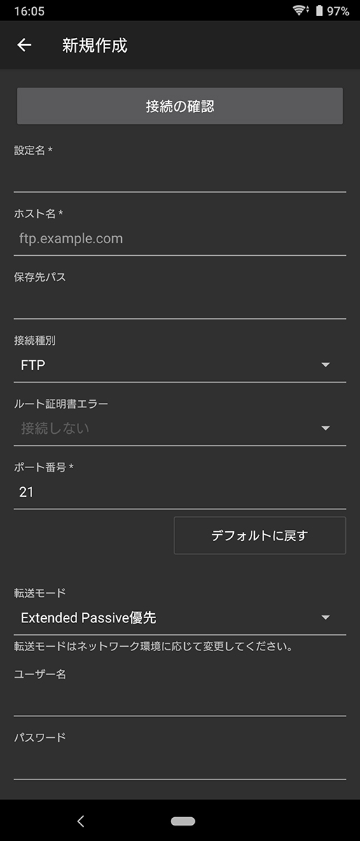 そして最終的に送りたい先へのFTP転送。