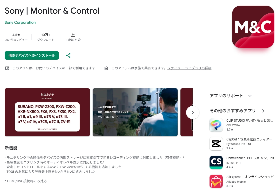 ソニーのカメラモニターアプリ「Monitor & Control」Ver.2.6.0アップデート開始。有償機能として、レコーディング機能を追加。