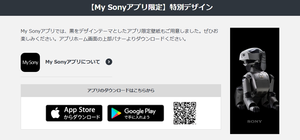 またMy Sonyアプリ限定で、特別デザインの壁紙も用意されている。
