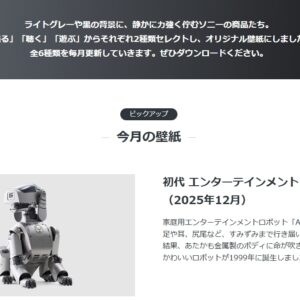 全6種類を毎月更新するとしていて、ソニー製品の実機写真を使った壁紙を今後6種類入手することが出来る。