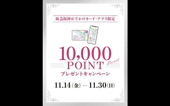 - 【阪急阪神おでかけカード・アプリ会員限定】Sポイント10,000ポイントプレゼントキャンペーン(11月14日(金)~)