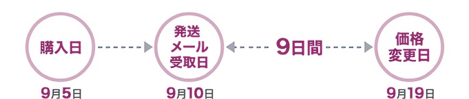 66,000円(税込)の商品を購入直後に、販売価格が55,000円(税込)に変更。