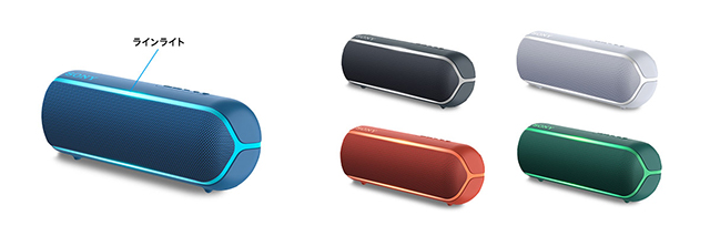 「SRS-XB22」は、ボディカラーにあった単色カラーを曲に合わせて光るライティング機能を備える。