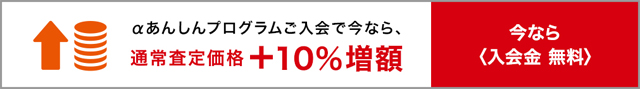 2017年9月1日(金)10時~2017年10月20日(金)10時まで、『αあんしんプログラム』に入会すると、「通常査定価格+10%増額」される。