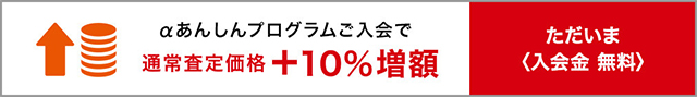 また、2019年7月22日(月)10時まで、『αあんしんプログラム』に入会していると、最終査定額+増額分にさらに「+10%増額」される。