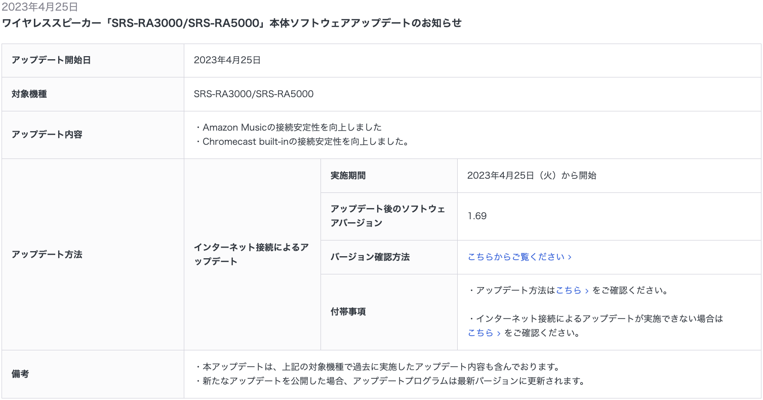 ワイヤレススピーカー「SRS-RA3000/SRS-RA5000」本体ソフトウェアアップデート