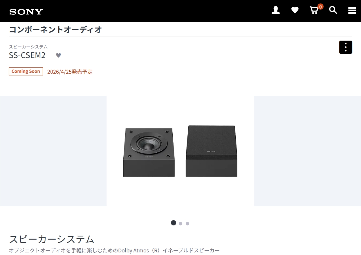 ソニーストアで、「SS-CSM2」シリーズ最後に登場するイネーブルドスピーカー「SS-CSEM2」(2台)の発売日が、2026年4月25日(土)に決定。