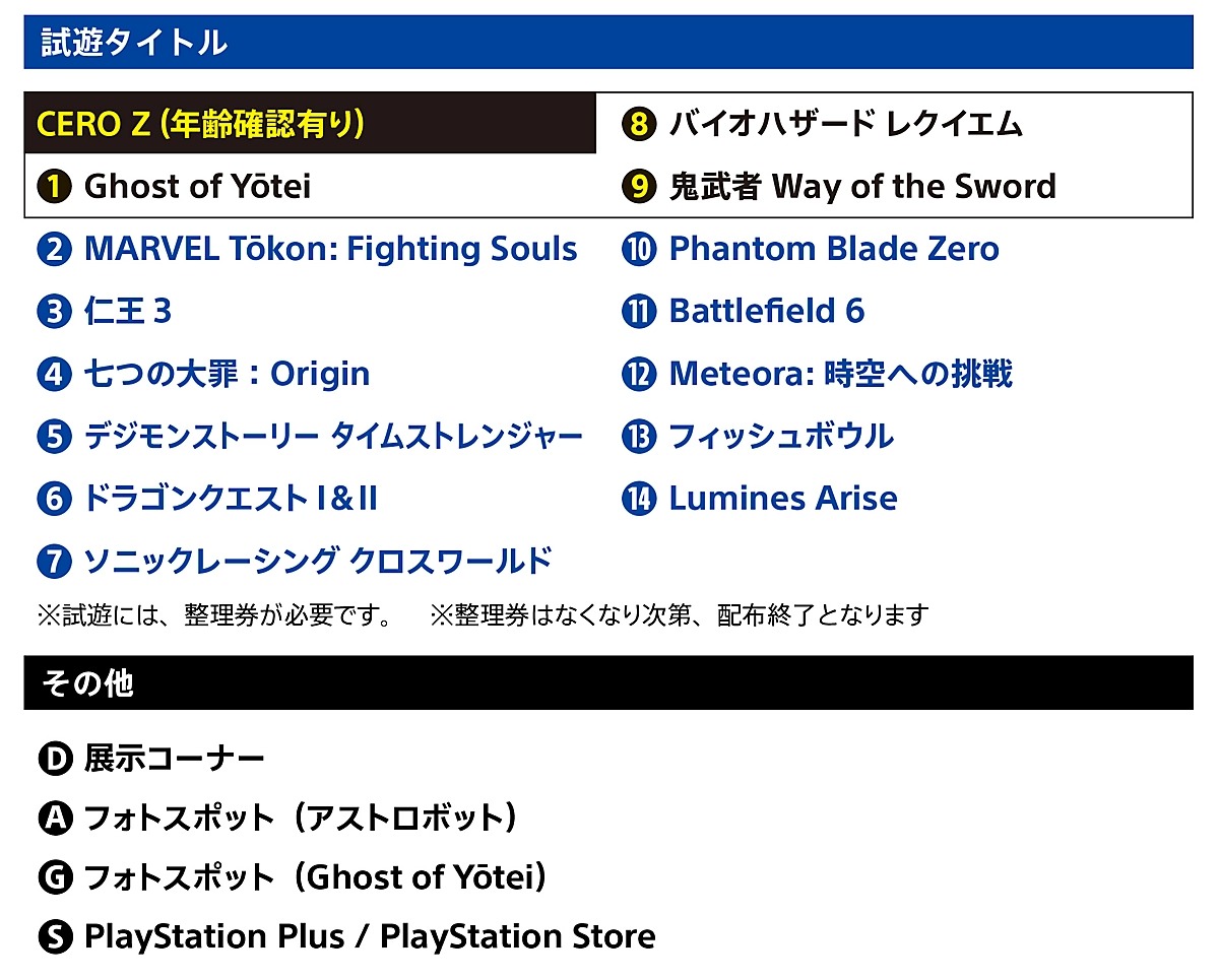 CERO Zタイトルである「Ghost of Yōtei」、「BIOHAZARD requiem」、「鬼武者 Way of the Sword」については、他のタイトルから少し隔離された場所に配置する配慮がされている。