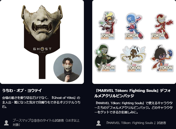 「MARVEL Tōkon:Fighting Souls」を試遊すると、『MARVEL Tōkon:Fighting Souls』デフォルメアクリルピンバッジがもらえる。