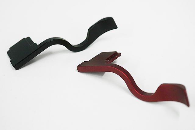 装着すると、グリップ部分がボディをうまい具合に、流れていくかたちで、”サムレスト”の名前のとおり、親指置き場になる。